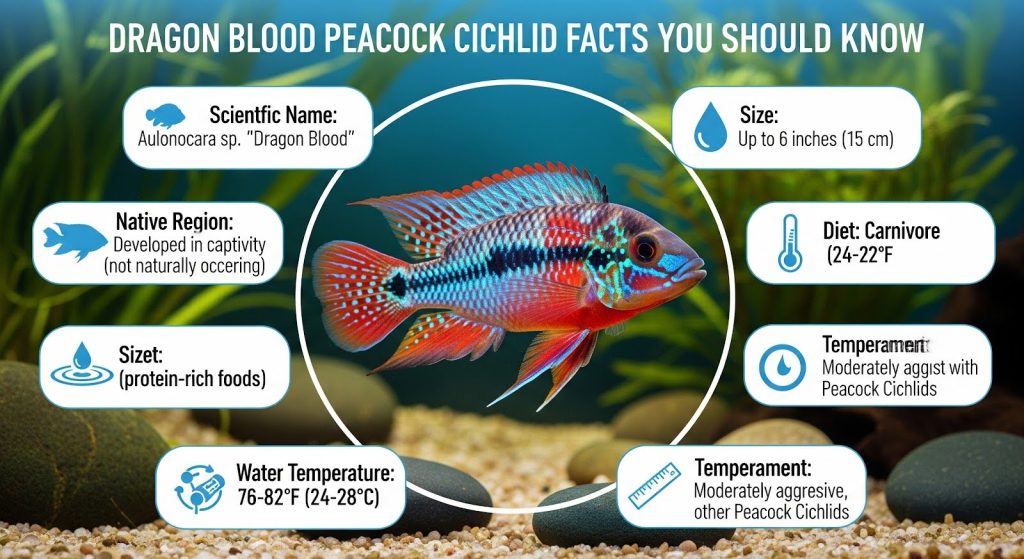 Here we explore in-depth all you need to know about the Dragon Blood Peacock Cichlid — from its origin and color to tank setup, diet, breeding, and compatibility. Whether you are an experienced fish keeper or just starting out, this article will help you feed your fish but still keep them happy, healthy, and colorful.