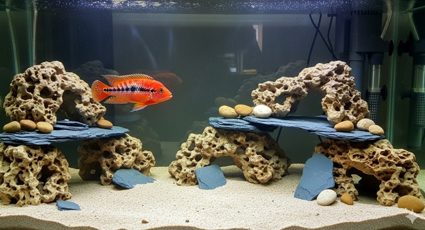 - Decor: Rock caves, ample hiding places
