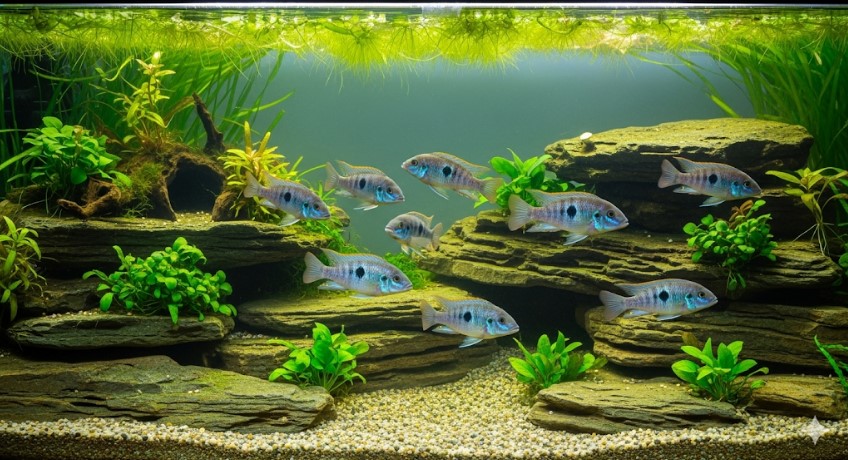 - Décor: Rocks, caves, and hiding places (replicates Lake Malawi)