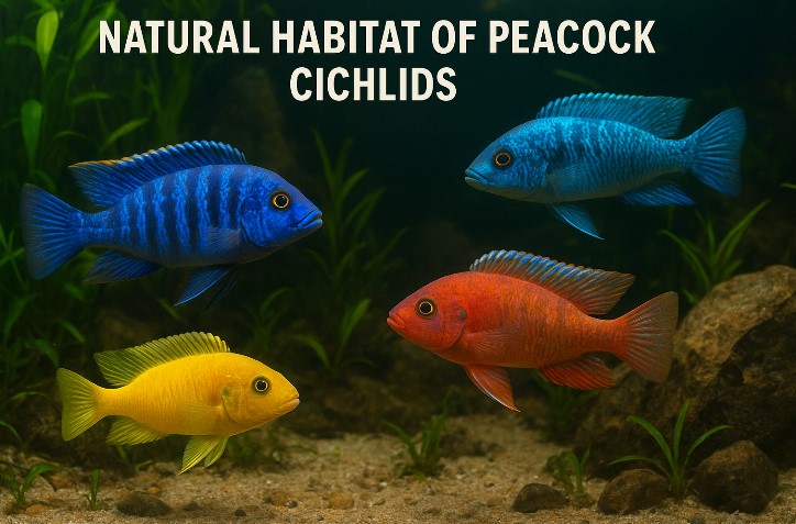 To appreciate peacock cichlid fish most, it’s useful to be aware of where they come from. They live in the clear, tropical waters of Lake Malawi, gliding above sandy bottoms and rocky outcroppings.
